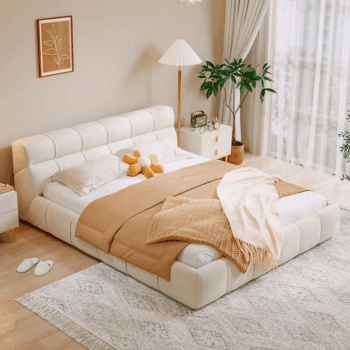 King-Sized Upholstered Platform Bed Frame