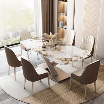 Luxurious Marble-Effect Oval Dining Table for 8 – Modern Chinese Style