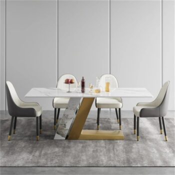 Luxury Modern Artificial Stone Dining Table with Golden Metal Legs